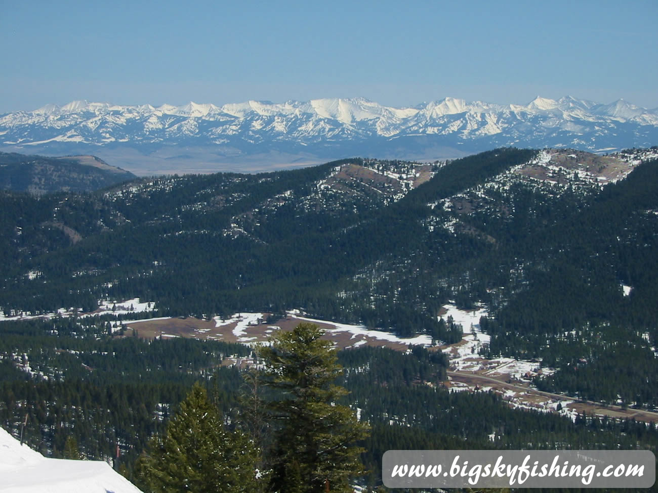 This photo was taken from the top of the Bridger Lift at Bridger Bowl. The snow-covered peaks in the distance are the Crazy Mountains.