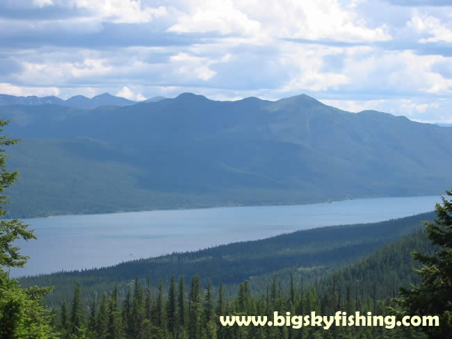 This view shows Lake McDonald as seen from the Trout Lake Trail, from one of the few viewing points (in general, the Trout Lake Hiking Trail passes through moderately thick forests). It should be noted that this photograph was taken prior to the Robert Fire in 2003 (about 2 weeks before it started, actually). Much of the forest you see on the front side of the lake (the northern shore) was completely burned over during the fire. The Robert Fire itself burned over much of the terrain that the Trout Lake Trail passes through - although generally not at a high intensity, as most of the trees survived the fire within the hiking trails vicinity.