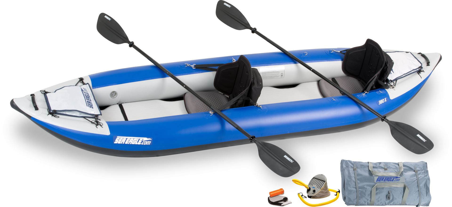 The Sea Eagle 380 Explorer Kayak, an excellent all-around inflatable boat for fishing, paddling and river floating.