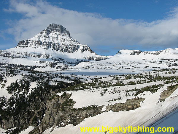 Reynolds Mountain is hard to miss, as it sticks up very prominently along the Continental Divide and is easily seen from along the entire eastern side of the Going to the Sun Road. This particular photo was taken soon after the Going to the Sun Road opened in June.